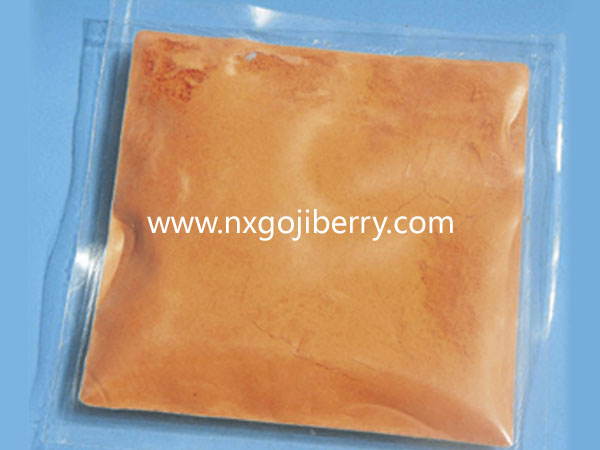 Specification: Goji juice spray-dried powder, Goji juice freeze dried powder Package: 25kg/bag, 5kg/bag Advantage: All the powder is made by Goji juice, so it is pesticides-free. All the powder is good water-soluble. No radiation. The place of origin of Goji berry--- Ningxia The ancient Yellow River culture, wild desert view and authentic Muslim human landscape, those are characteristics of Ningxia Province. Four distinctive seasons, plenteous sunshine, fertile soil and rich crop made the nature condition in Ningxia a perfect place for Goji berry. Ningxia have the unique natural ecological conditions to suitable for the cultivation of Goji berry, where production of Goji berry have beautiful color, large grains, thin flesh, small seed, sweet, etc. So the quality of Goji berry fruits in Ningxia is higher than those in other places, for which this province is famous throughout the world. Bunches of red agate-Ningxia Giji berry spread fragrant and show its special glamour. |